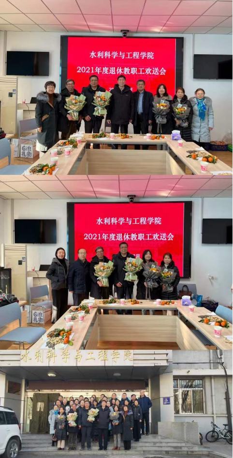 希望四位老师退休后的生活更加丰富多彩,身体健康,家庭幸福美满!同时也希望四位老师退而不休,一如既往地关注和支持水利学院和学校工作,常回“家”看看。