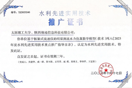 2023年10月20日,水利部在山东省聊城市召开数字孪生灌区现场会。会议公布了13个数字孪生灌区模型推荐清单,其中由我院吴建华课题组牵头申报的“基于框架式流速仪的明渠测流水力仿真数学模型”被列入“2023年度水利先进实用技术重点推广指导目录”。