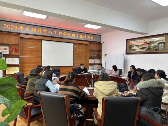 2023年12月29日,水利学院在水利馆二层会议室召开班主任会,学院党委副书记、全体辅导员及班主任参会,会议由学院党委副书记王飞主持。