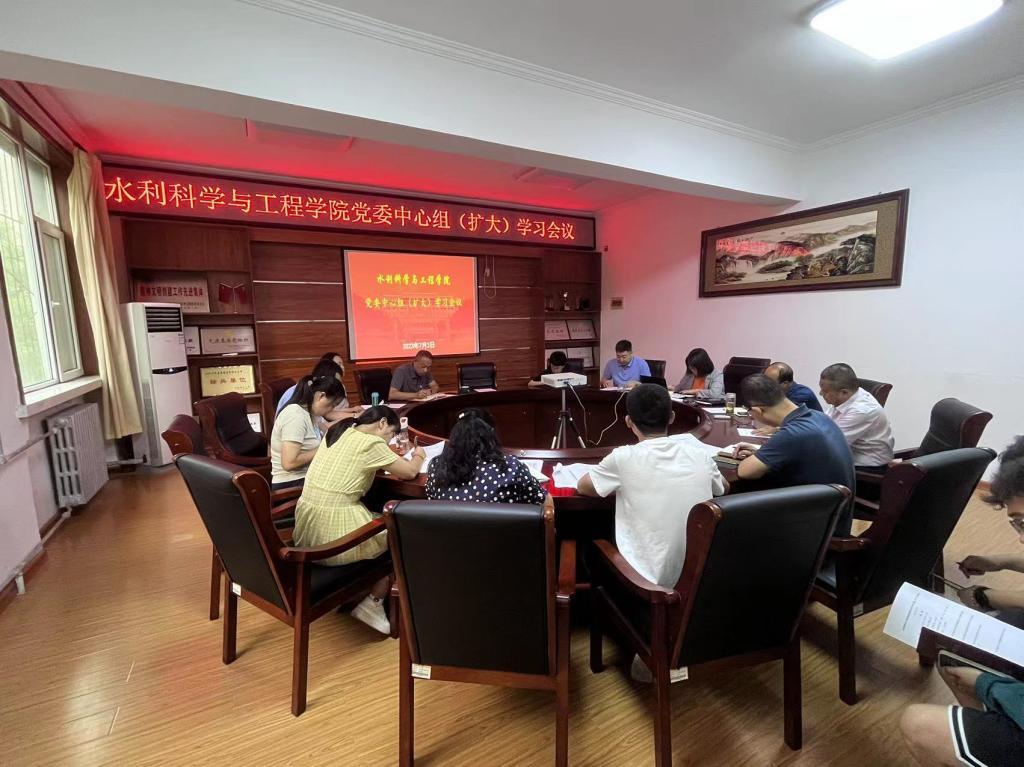 7月3日下午,水利学院党委在二层会议室召开理论学习中心组(扩大)学习会议,传达学习了习近平总书记在文化传承发展座谈会上的重要讲话精神、在听取内蒙古自治区党委和政府工作汇报时的重要讲话精神。学院领导班子、各系(中心)主任、各党支部书记、三办主任、组织员等参加会议。学院党委书记闫怡红主持会议。