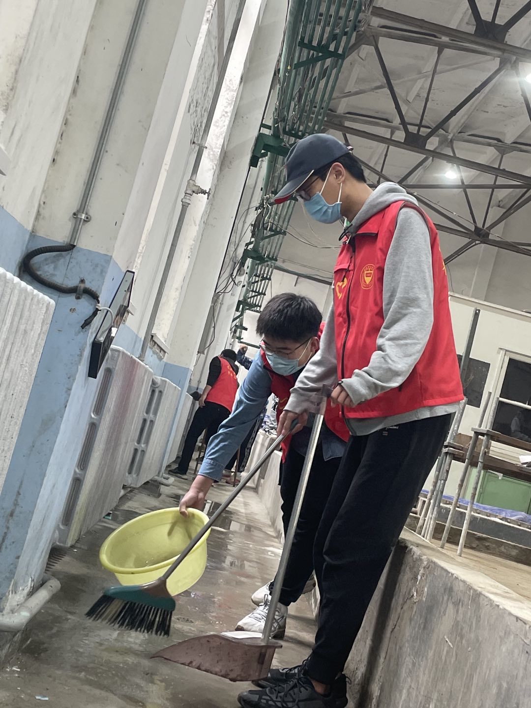 活动中,志愿者发扬不怕吃苦的志愿服务精神,拿着扫帚、铁锹,提着垃圾袋开始卫生清理。志愿者有的用手捡拾垃圾,有的用铁锹铲除排水沟淤泥,有的在仔细擦拭着窗户;经过1个多小时的努力,水流大厅实验室环境卫生焕然一新,受到了老师及同学们的一致好评。