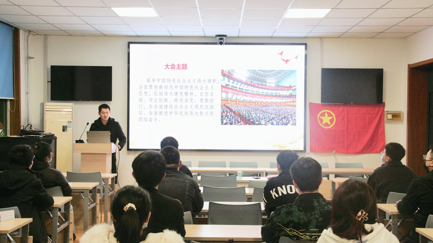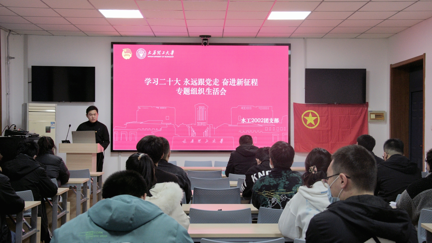 为深入学习宣传贯彻党的二十大精神,紧密联系团员思想,交流学习体会,对标先进标准,水工2002团支部于2022年11月27日在水利学院三楼会议室开展了示范性“学习党的二十大,永远跟党走,奋进新征程”专题组织生活会。校团委书记史薛伟、水工本科党支部书记王泽宇出席本次会议。
