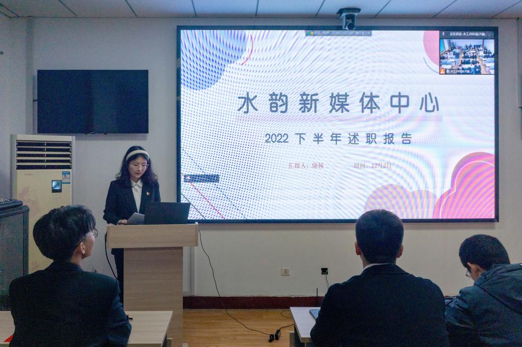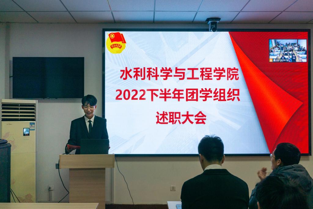 会上,院学生会主席赵子赫、团委副书记梁尧琦、温情驿站队长杨京达、大学生科学与技术协会主席宿未青、水韵新媒体中心宣传部部长康杨,依次进行了述职发言。他们从本学年工作成果、工作中存在的不足及改进措施以及对下一学年的工作展望三个方面进行了汇报,总结了过去一年中在组织建设、校园文化活动、学生服务及宣传等方面取得的成绩,同时也分享了一年来学生工作带给自己的成长与收获。